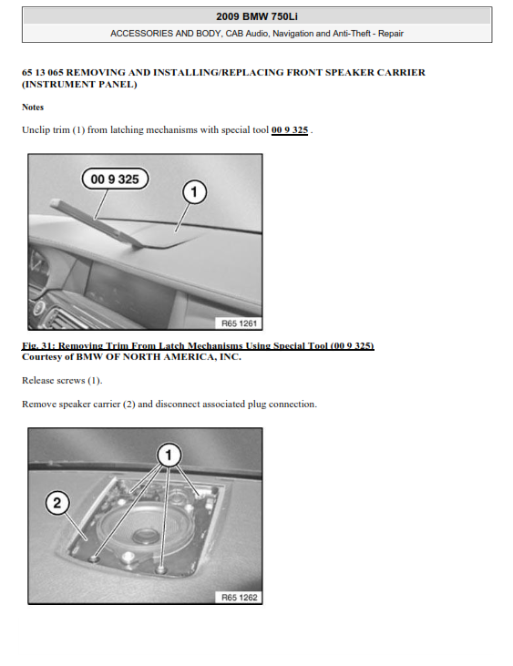 - Body, interior, and comfort system repair instructions (iDrive, climate control, sensors, etc.)
