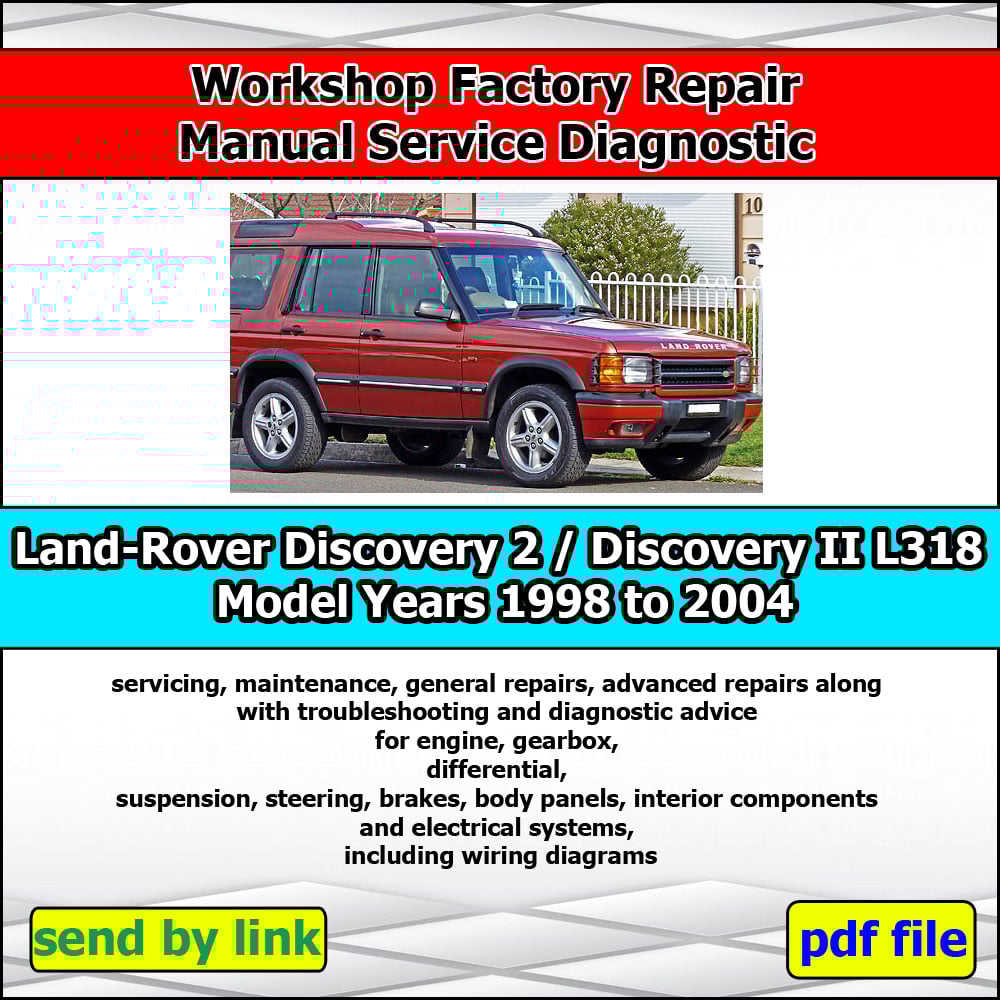 The Land Rover Discovery 2 (Discovery II) L318 Repair Manual (1998–2004) is a comprehensive factory-style workshop manual covering second-generation Discovery models. This professional service manual is designed for mechanics, Land Rover specialists, independent repair shops, and DIY owners who need accurate, manufacturer-approved repair and maintenance information.
