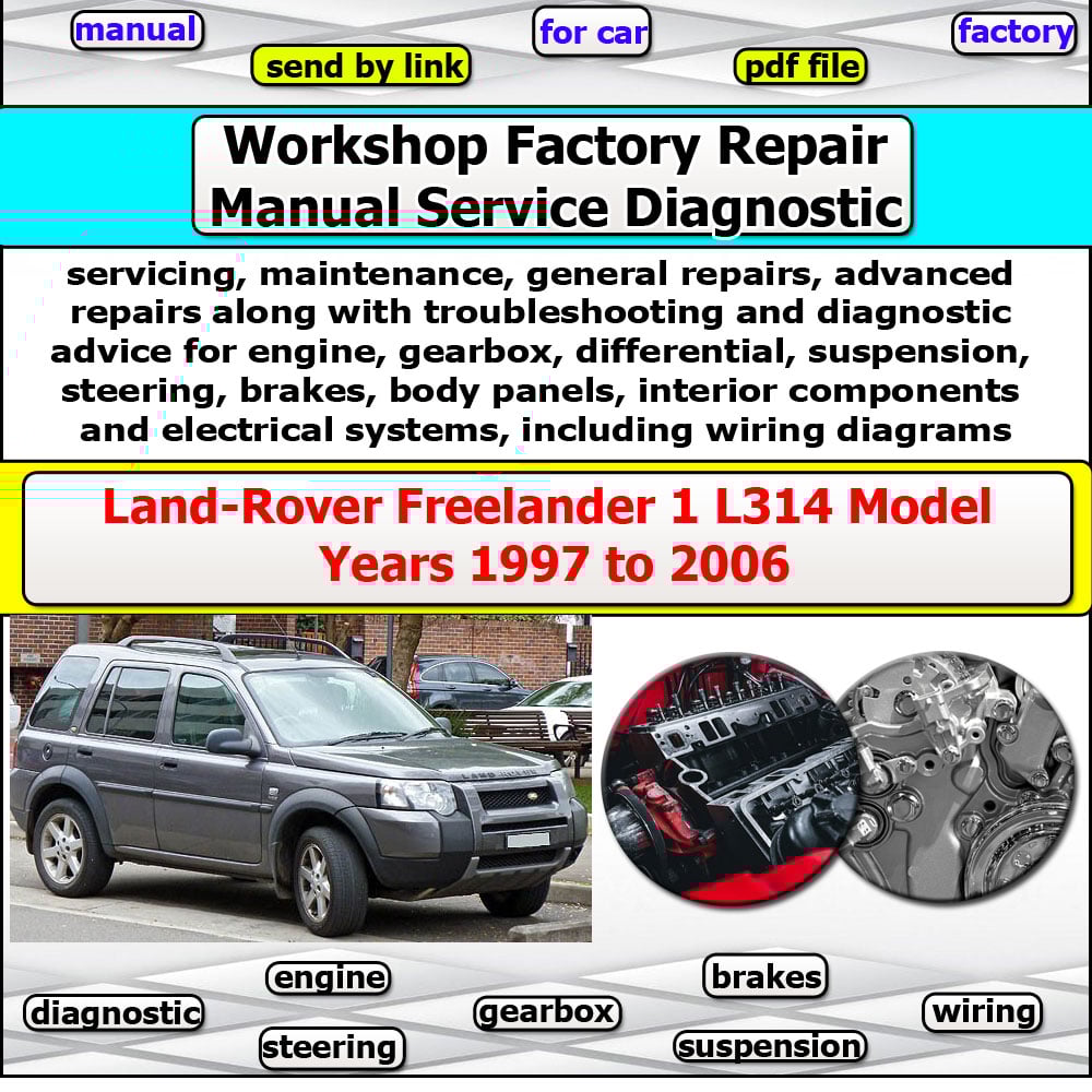 The Land Rover Freelander 1 L314 Repair Manual (1997–2006) is a comprehensive factory-style workshop manual covering first-generation Freelander models. This professional service manual is ideal for mechanics, Land Rover specialists, independent repair shops, and DIY owners who need accurate, manufacturer-approved repair and maintenance information.