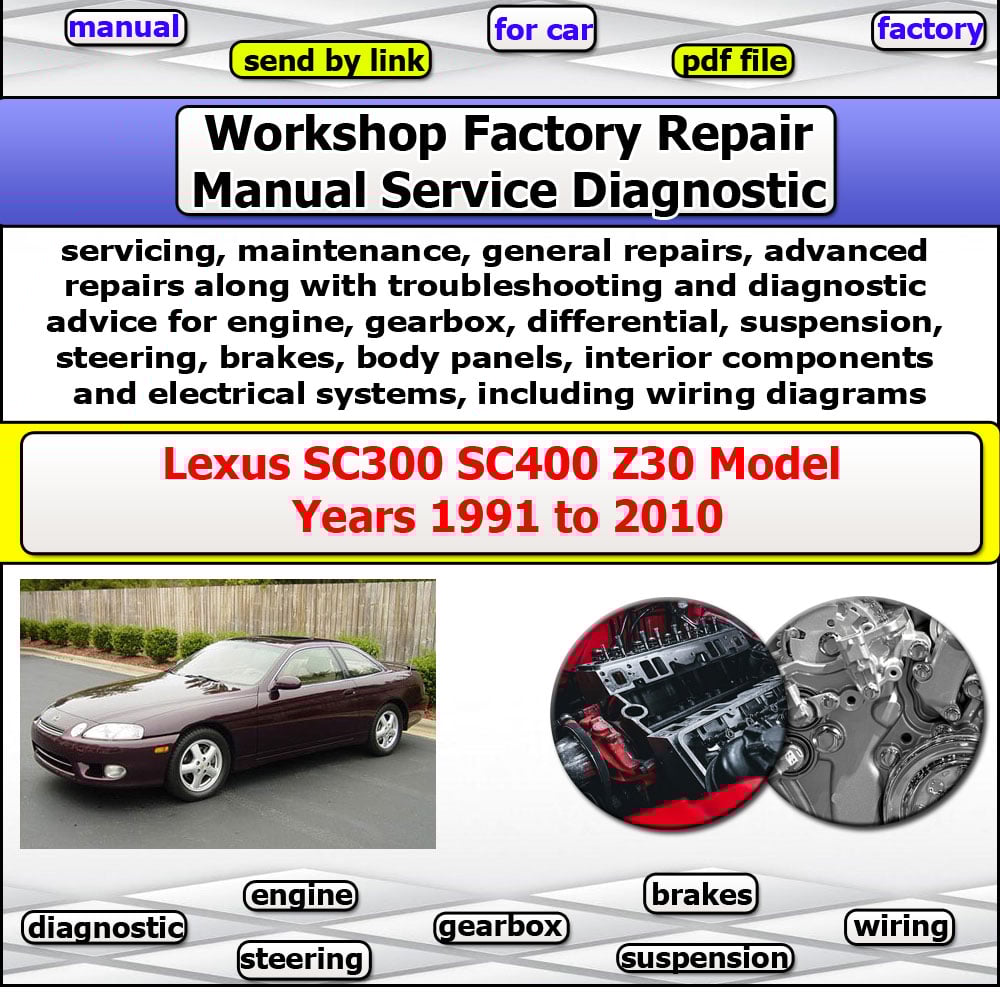 The Lexus SC300 & SC400 Z30 Repair Manual (1991–2010) is a comprehensive factory-style workshop manual covering first-generation Lexus SC series models, including the SC300 and SC400. This professional service manual is ideal for mechanics, Lexus specialists, performance tuners, restorers, and DIY owners who require accurate, manufacturer-approved repair and maintenance information.