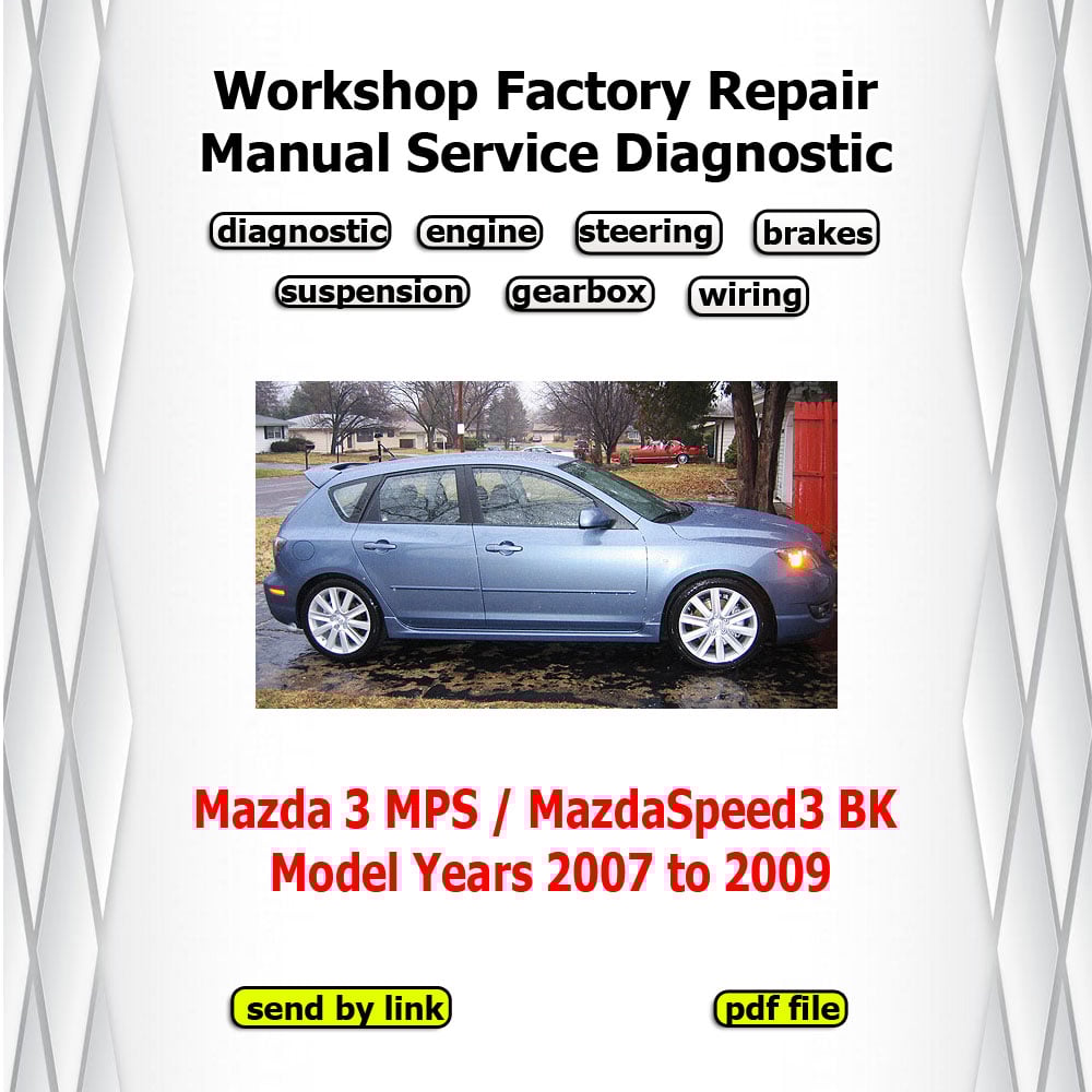 Delivered as a high-quality PDF digital download, this manual includes step-by-step repair procedures, detailed technical illustrations, wiring diagrams, and official Mazda specifications to help you correctly diagnose, service, and repair your Mazda 3 MPS / Mazdaspeed3 BK.