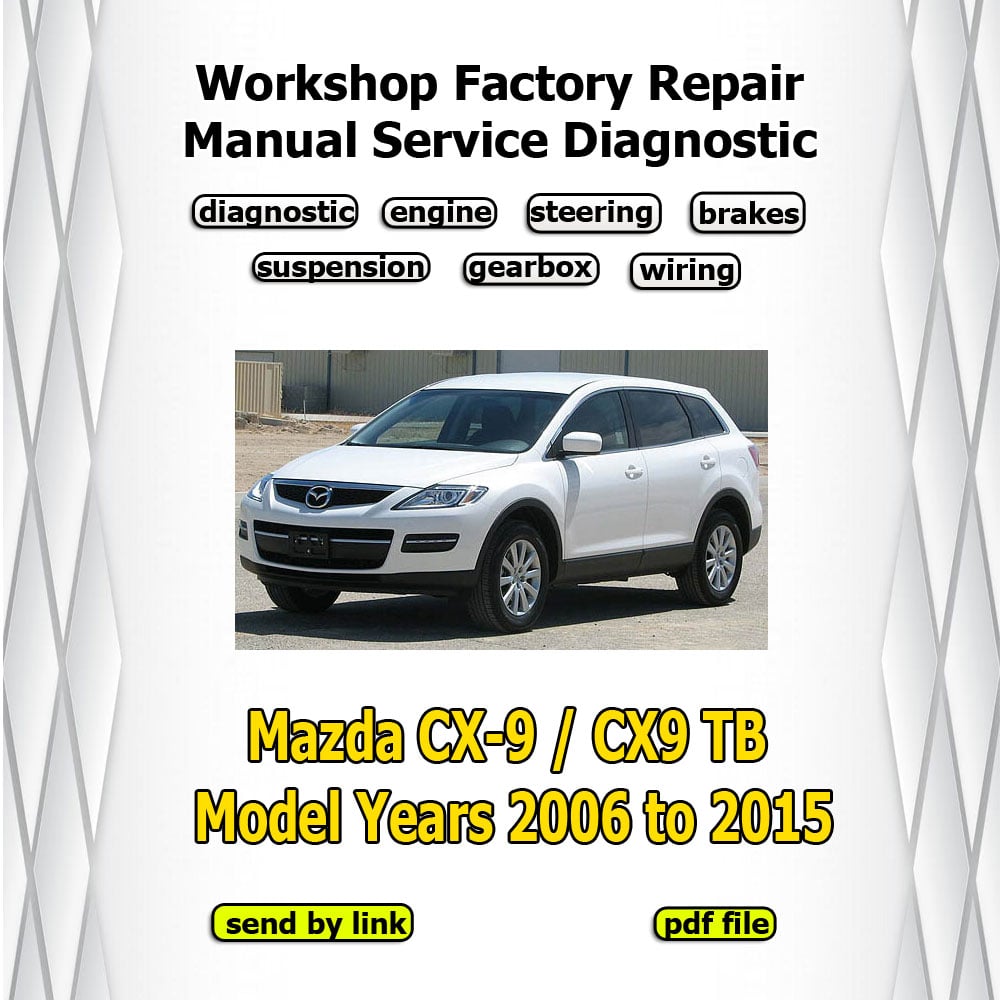 The Mazda CX-9 / CX9 TB Repair Manual (2006–2015) is a complete factory-style workshop manual covering the first-generation Mazda CX-9 (TB) large SUV. This professional manual is perfect for mechanics, Mazda specialists, fleet operators, and DIY enthusiasts who require accurate, manufacturer-approved repair and maintenance information.