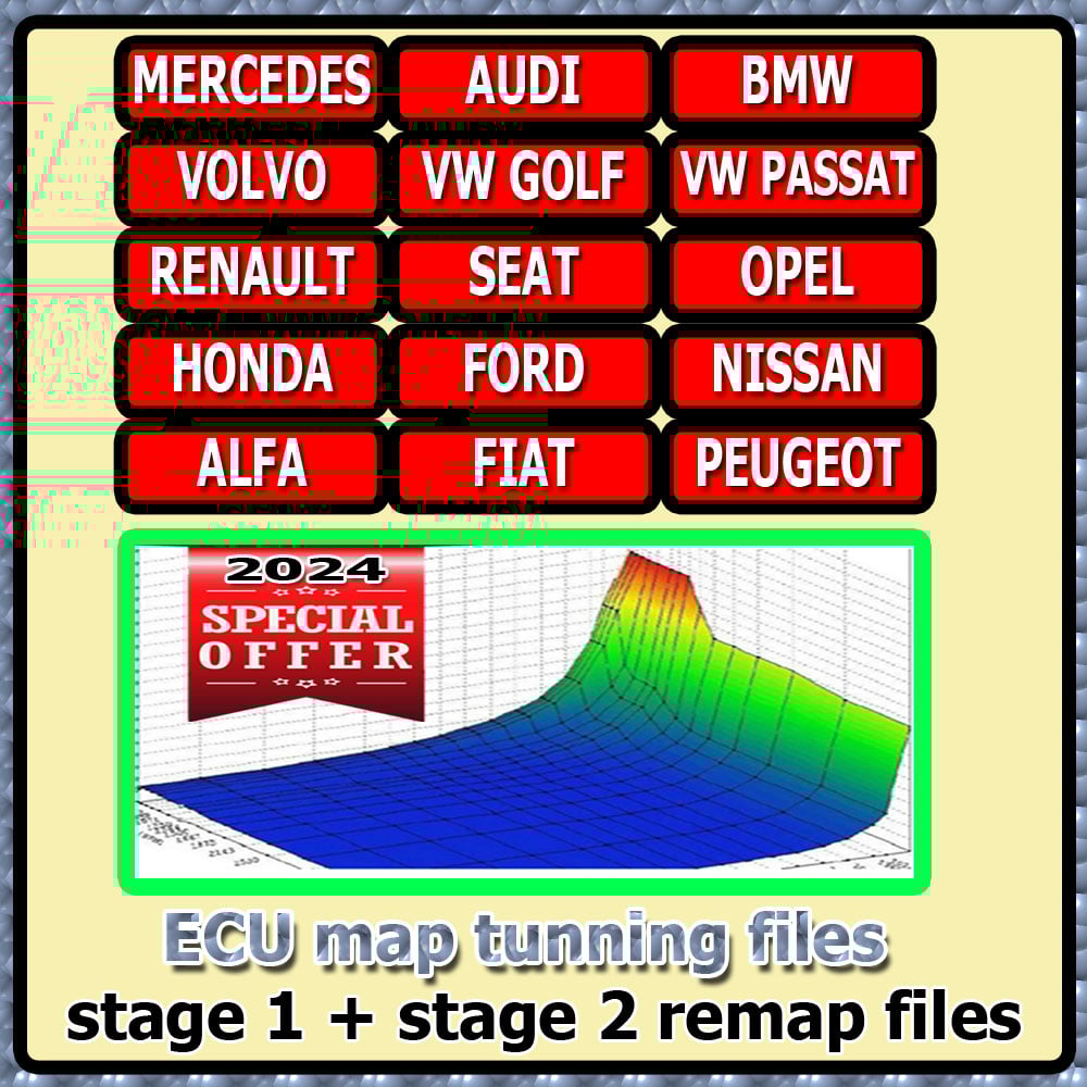Car Repair Tool Diagnostic Automobiles Mercedes, Bmw, Audi, Seat, Renault, VW Passat, VW Golf, Honda, Nissan, Alfa, Fiat, Ford, Citroen, Peugeot, Opel, Volvo Tuning ECU Map Tuning Files Stage 1 + Stage 2 Remap Files